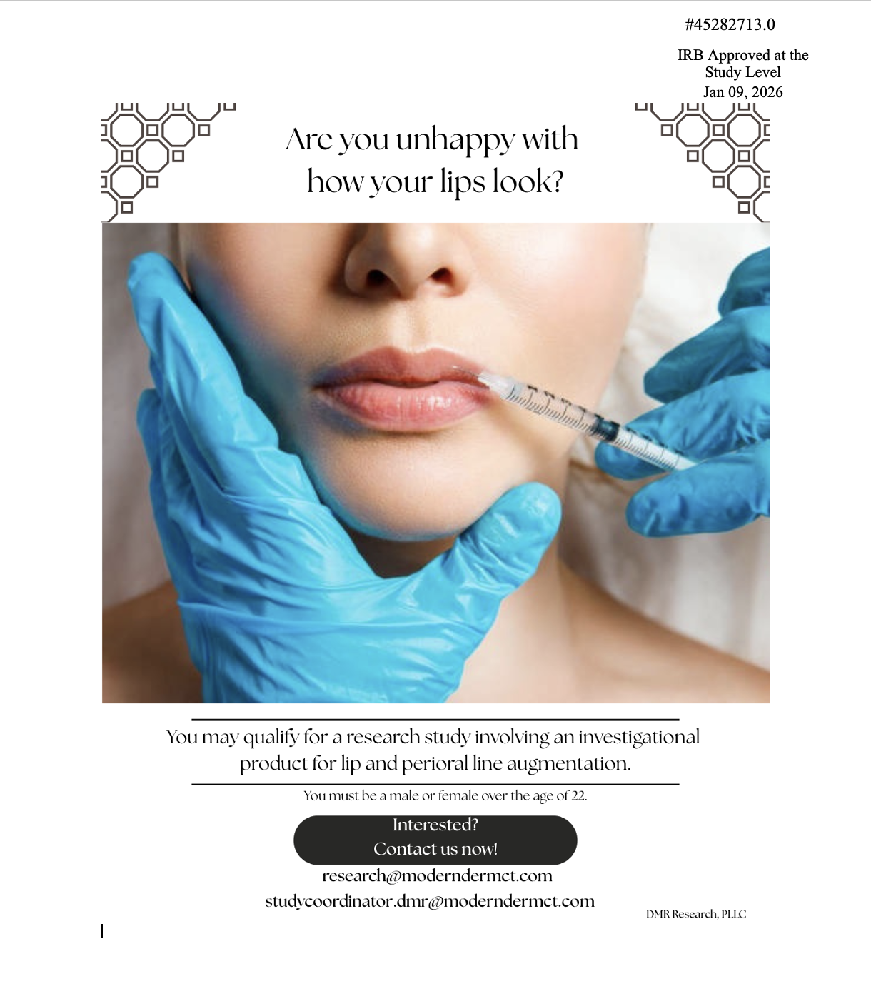 Participating in clinical research studies is one of the many ways we stay on the pulse of what’s next in Dermatology. Please check back here for details and reach out to our research department with any questions: research@moderndermct.com or (203) 841-5005.